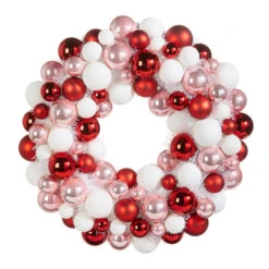 Raz 22″ Pink, Red, And White Multicolor Ball Ornament Wreath W4302338