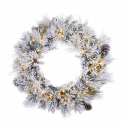 Raz 30″ Pre-lit Flocked Pine Christmas Wreath With Warm White Lights W4052019