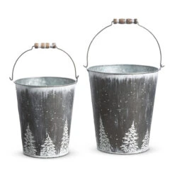 Raz Set Of 2 Galvanized Buckets With Trees Christmas Decorations 4355001