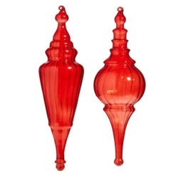 Raz 10″ Large Red Ribbed Finial Glass Christmas Ornament 4300722