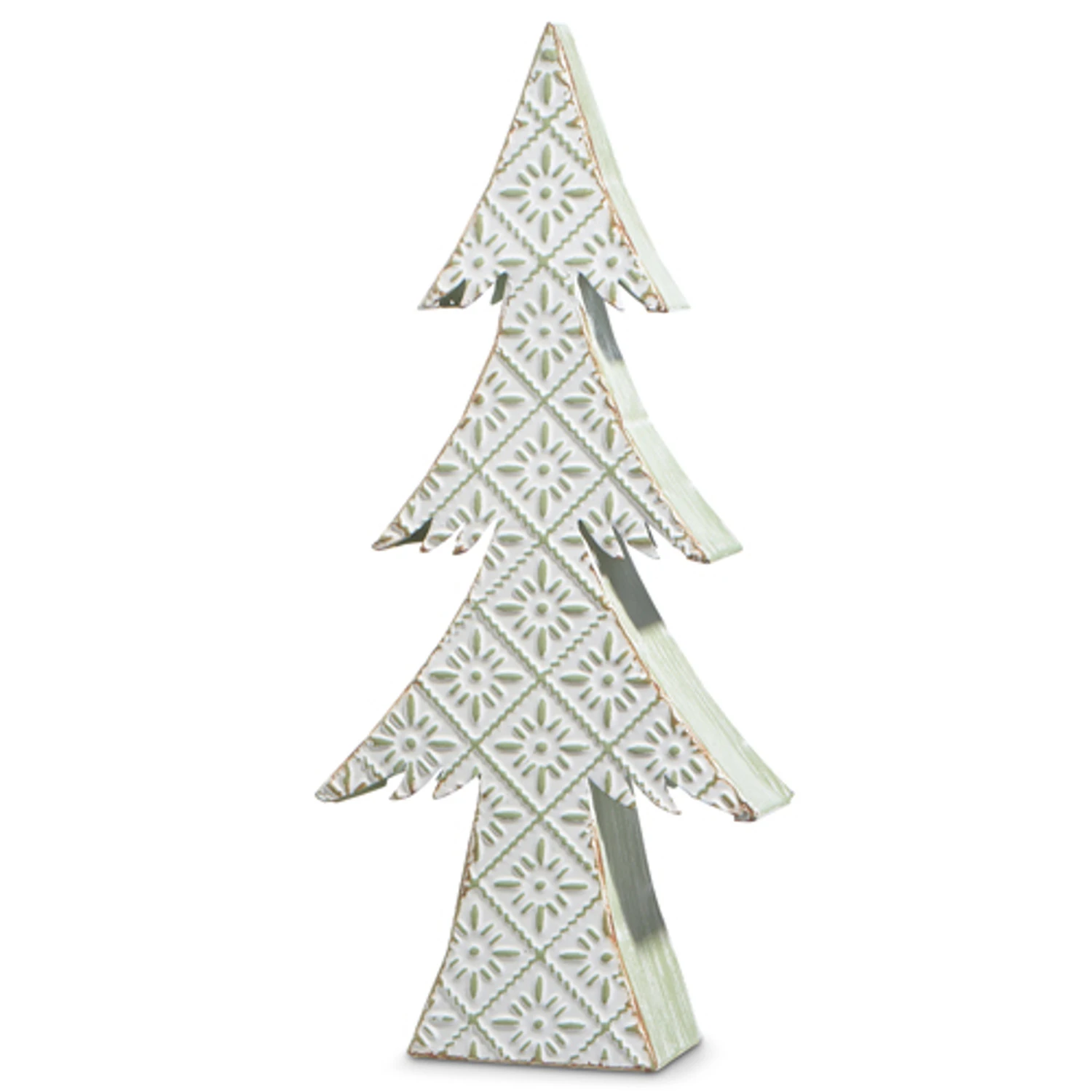 Decorate your mantle with these pretty embossed trees! Each one is a pale green metal with a diamond and floral pattern! Choose 16.25″ or 22″. Each sold individually. Each sold individually. Made by Raz Imports. Made of metal. Dimensions: 16.25″- 7.25″ L X 2.5″ W X 16.25″ H; 22″- 10.75″ L X 3.25″ W X 22″ H. Item #: 4325928 or 4325929