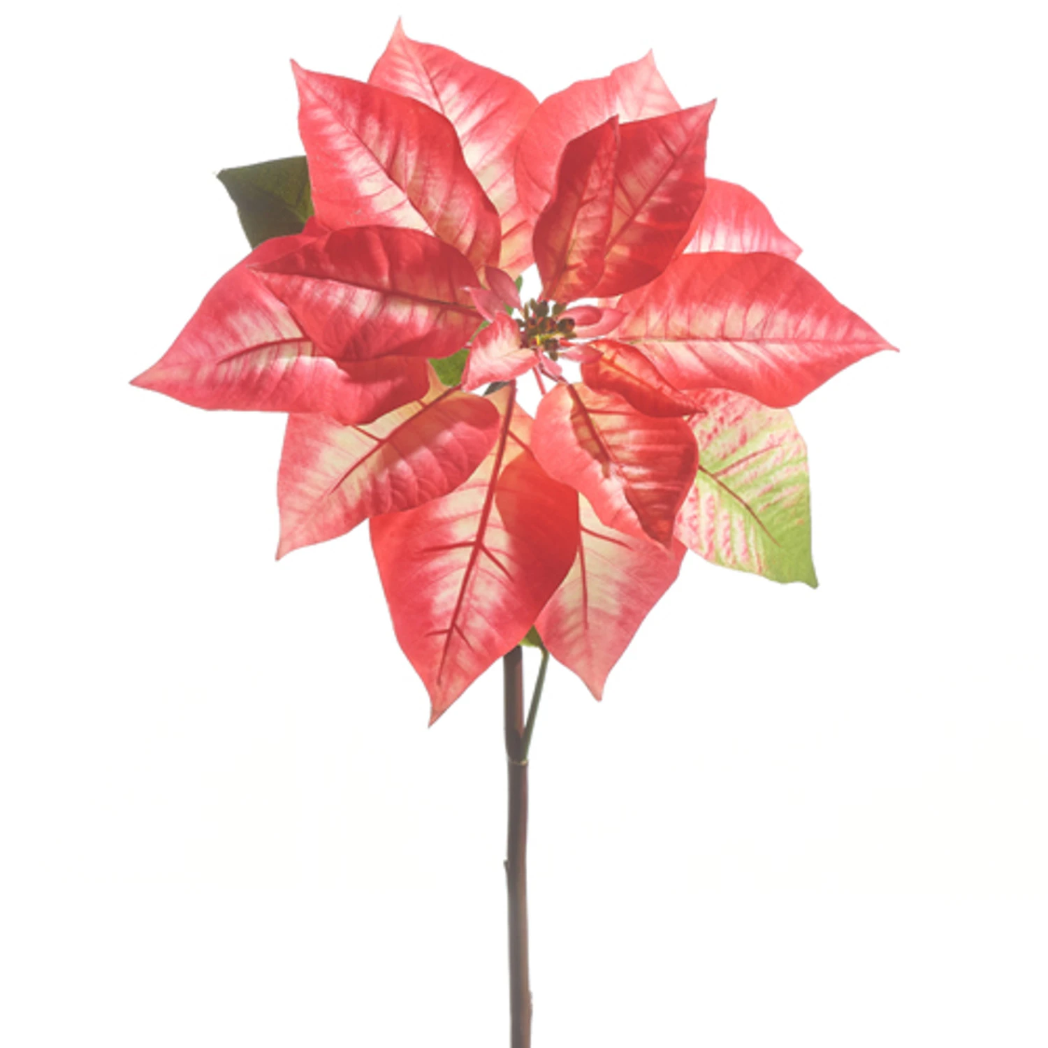 Decorate your tree with a few of these gorgeous poinsettias! It is made up of pink, red, and white leaves and a few green leaves for accent! Made by Raz Imports. Made of polyester. Dimensions: 24.5″. Item #: F4341706