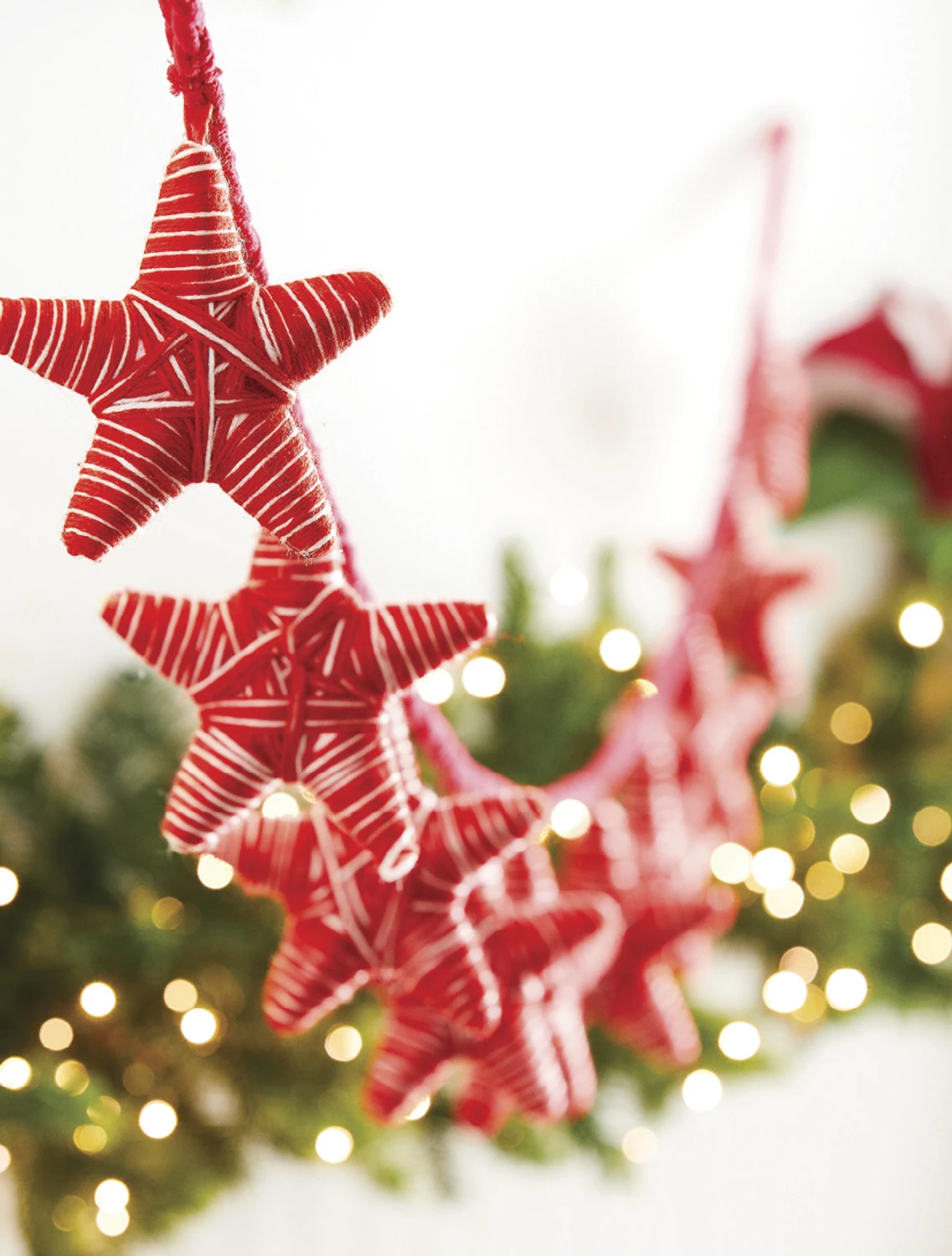 Each of these stars are wrapped with red and white yarn for a super cozy feel! Hang this garland in a greenery garland or in your Christmas tree! Made by Raz Imports. Made of yarn. Dimensions: 6′. Item #: G4160800